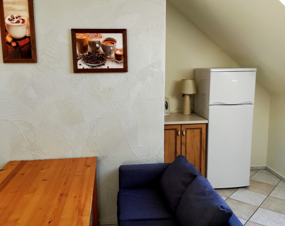 - Aneks kuchenny (lodówka, kuchenka, zlew, czajnik, naczynia),