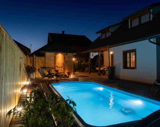 - Całoroczny, podgrzewany basen z przeciwprądem i przesuwanym zadaszeniem, umożliwiający pływanie w miejscu.