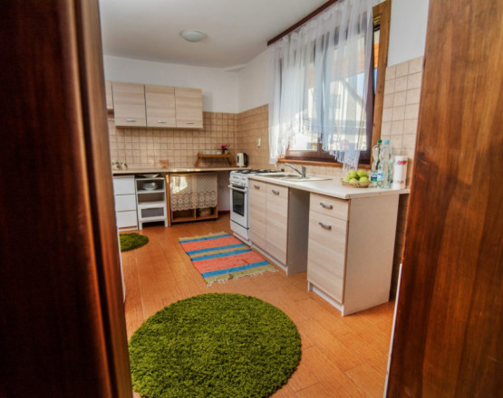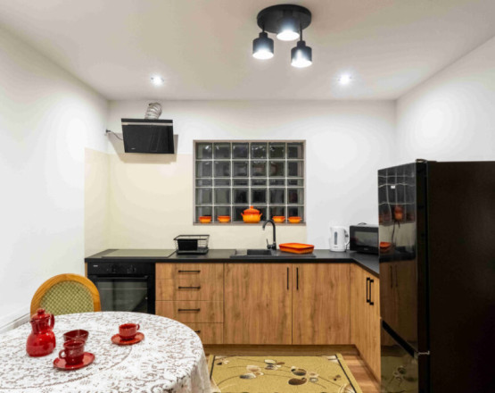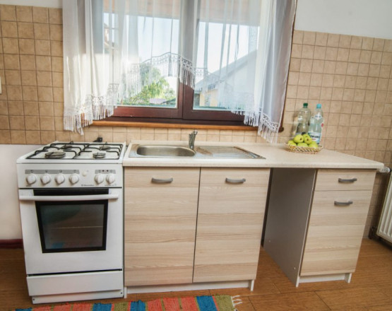 - W pełni wyposażona kuchnia: gazowa kuchenka, mikrofalówka, lodówka, czajnik elektryczny – wszystko, co potrzebne do przygotowania domowych posiłków.