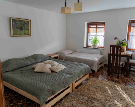 Do Państwa dyspozycji oddajemy 6 komfortowych pokoi rozmieszczonych w 3 budynkach, oferujących łącznie 20 miejsc noclegowych.