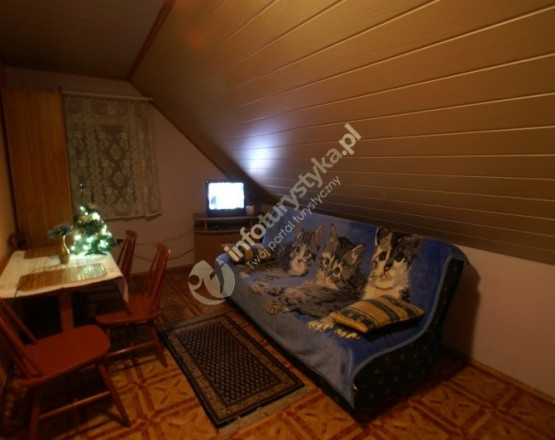 Lokalizacja (ok. 200m od głównej drogi) oraz ogromna przestrzeń (4 ha) czyni je cichym zakątkiem dla pragnących wypocząć i oderwać się od dzisiejszego zgiełku. Doskonałe warunki dla rodzin oraz osób kochających spacery i rowerzystów . Na dużym ogrodzonym pokrytym zielenią i drzewami terenie dysponujemy kompleksem domków od standardowych do komfortowych. Wszystkie z nich są w pełni wyposażone - kuchnia, łazienka, TV oraz kryta werandę z widokiem na Łysice. Wszystkie domki są całoroczne, ogrzewane konwektorami elektrycznymi, a trzy domki dodatkowo posiadają kominki murowane. Każdy z domków ma wokół własny teren z parkingiem na auto, ogrodzony gęstymi drzewami podkreślającymi prywatność i intymność gości. Celem naszym jest uprzyjemnić i uatrakcyjnić pobyt w naszym gospodarstwie Państwu. Cały ten ogromny teren staramy się tak zagospodarować aby z pobytu u nas czerpali Państwo radość i zadowolenie:- dla dzieci duży plac zabaw z huśtawkami, karuzelą, piaskownica i wiele różnych rzeczy, a także wspaniałą chatka z bali zwana "Chatką Baby Jagi" z zabawkami i mebelkami dla najmłodszych