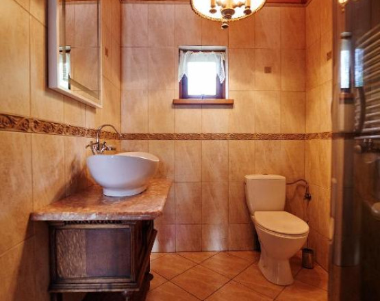 - 4 komfortowe pokoje z łazienkami oraz TV znajdujące się na parterze i pierwszym piętrze ( trzy pokoje 2-osobowe oraz jeden apartament 3-osobowy z dwoma oddzielnymi sypialniami)