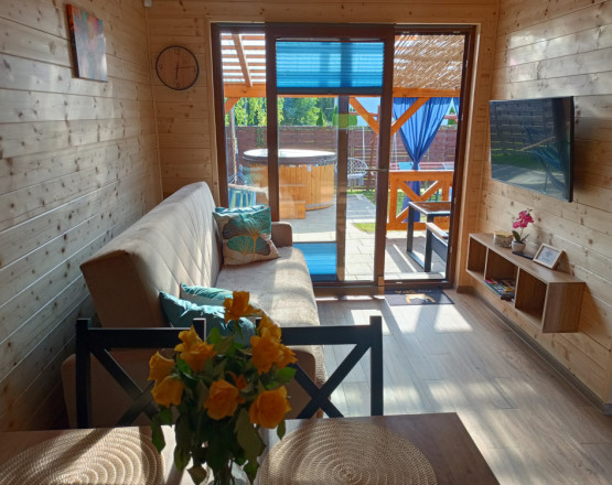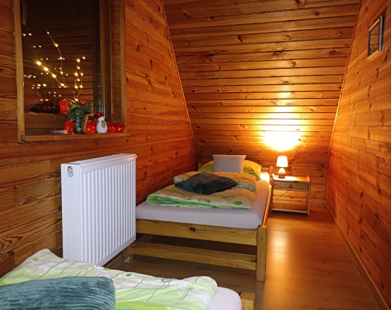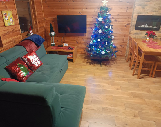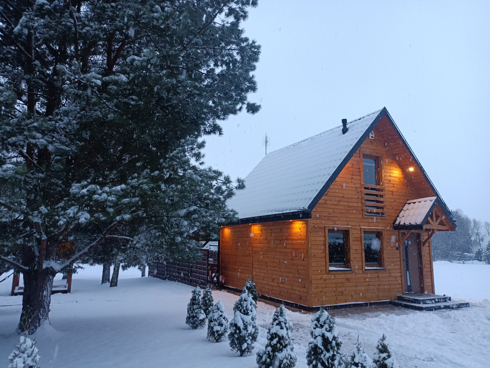 Domki wykonane są z drewna w stylu góralskim, a ich wnętrza tworzą ciepły, klimatyczny nastrój – idealny zarówno na rodzinny wyjazd, jak i romantyczny pobyt we dwoje.