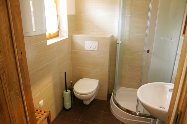 Poddasze: dwa przytulne pokoje (w każdym łoże małżeńskie i łóżko pojedyncze) oraz obszerną, wygodną łazienkę.