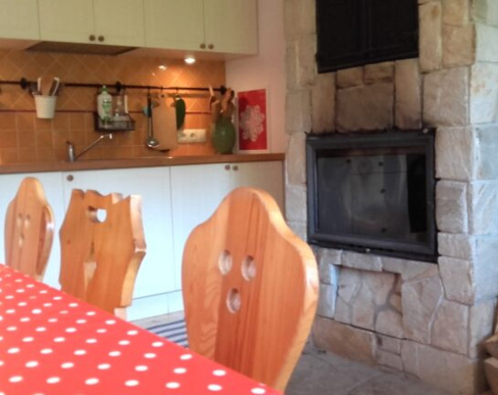 Dom ogrzewany jest kominkiem znajdującym się w kuchni, który obsługiwany jest (rozpalenie, dokładanie drewna) we własnym zakresie.