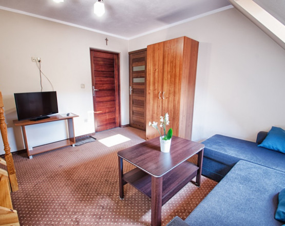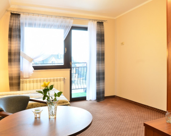 Oferujemy noclegi z wyżywieniem w centrum miejscowości, w komfortowych pokojach 1–4 osobowych oraz apartamentach dla 4–6 osób.