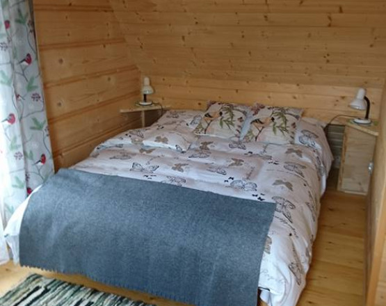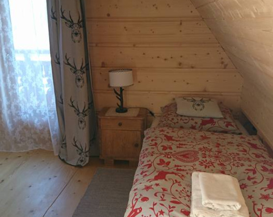 Na piętrze znajdują się dwie sypialnie , w pierwszej łóżko małżeńskie,w drugiej dwa pojedyncze, oraz łazienka. Przy każdej sypialni znajduje się balkon z którego można podziwiać piękne widoki.