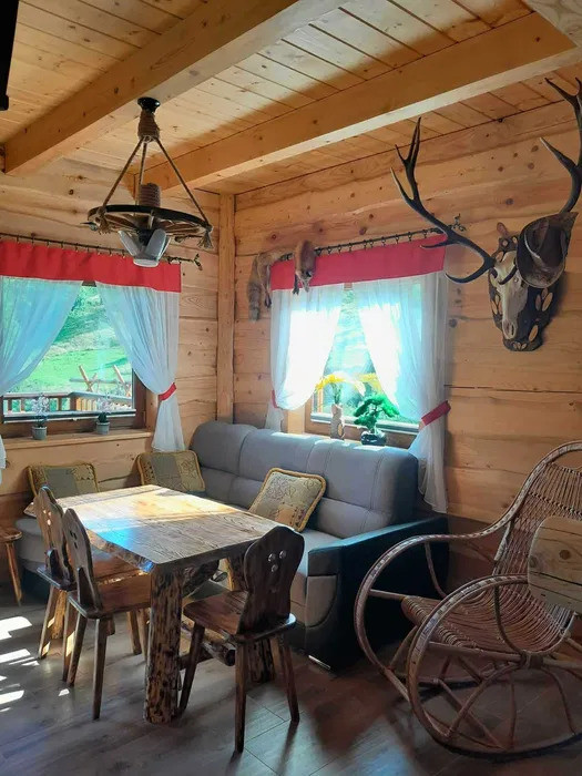 Domek położony jest w malowniczej miejscowości Grywałd, otoczony drzewami i oferujący widok na Pieniny. Zbudowany z drewna, z kamiennym kominkiem, który nadaje mu ciepły i przytulny klimat. Zewnętrzny taras to doskonałe miejsce, by delektować się filiżanką gorącej herbaty i podziwiać otaczającą naturę.