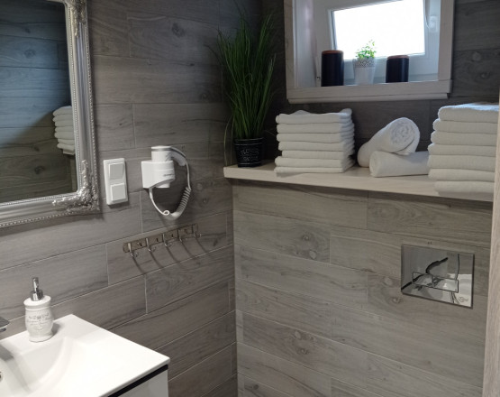 Do dyspozycji Gości są nowe domki, przytulnie urządzone, z doskonałym wyposażeniem. W każdym z nich znajduje się salon z telewizorem i aneksem kuchennym, łazienka z prysznicem, a także taras przed wejściem. Salon wyposażony jest w rozkładaną kanapę, stół jadalniany z krzesłami, telewizor a także aneks kuchenny przygotowany do komfortowego przyrządzania posiłków. Oferowane przez nas domki mają powierzchnię 60 m2. Goście mieszkający w naszych domkach mogą korzystać z dostępnego tarasu znajdującego się tuż przed wejściem. Jest to idealne miejsce do spędzania czasu na świeżym powietrzu.