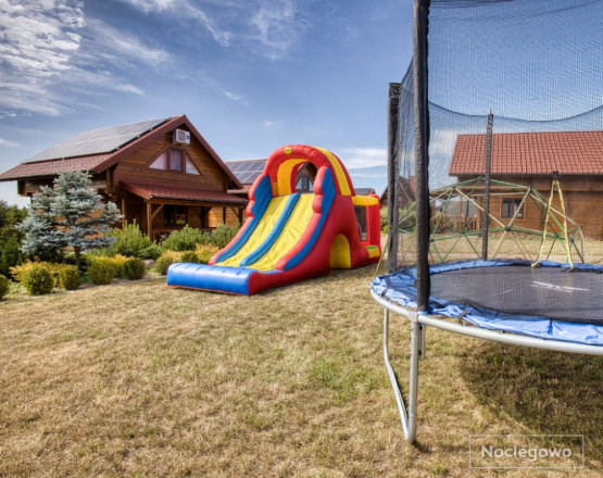 Obiekt znajduje się na ogrodzonej, 24-arowej działce, z dużą ilością przestrzeni do relaksu i zabawy. Cały kompleks pomieści nawet 30 osób – do dyspozycji oddajemy cztery domki letniskowe: