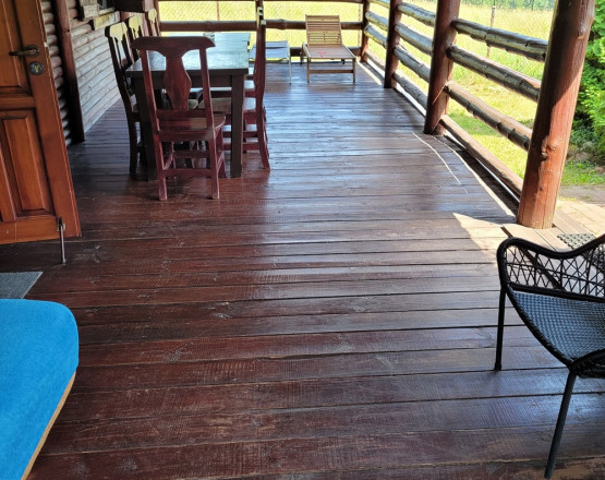 Chrzanowo 12 drewniany piętrowy dom - na 8 osób. W domku mały salonik z aneksem kuchennym, pokój z podwójnym łóżkiem i drugi pokój z piętrowym łóżkiem (w salonie kanapa rozkładana na dwie osoby), taras i wejście do łazienki i toalety z tarasu. Na ogromnej działce: grill, basen, huśtawki, domek na drzewie, rowery, pole do gry w siatkówkę i kosza, własna prywatna plaża- do dyspozycji łódka i kajak, leżaki i parasole.