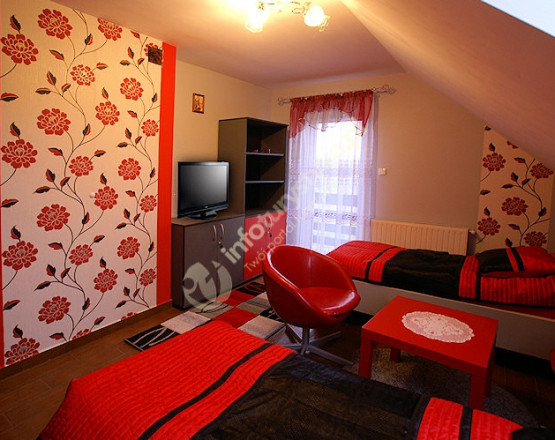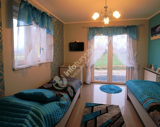 - dwa pokoje (w jednym znajduje się łóżko dwuosobowe, a w drugim dwa jednoosobowe). W każdym pokoju jest telewizor.