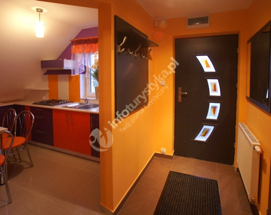Gorąco polecam jagodowy domek w kolorach jagody, w pobliżu lasu. Po pierwsze, bardzo ładny wygląd, bardzo kolorowy w środku, bardzo czysty, pachnący i wygodny. nie chce się z niego wychodzić. Właściciele bardzo mili, komunikatywni, życzliwi, spełniający prośby klientów. Chcieliśmy rowery i zaraz je właściciele dostarczyli całkowicie za darmo, na ile dni chcieliśmy. Pani Edyta - właścicielka - rozmawia z nami, odpisuje od razu na esemesy, kiedy trzeba to jest od razu, bardzo ugodowa i serdeczna, z poczuciem humoru. Malownicza okolica, wszędzie blisko, na Łysicę, Na Łysa Góre, na Radostową - to szczyty Gór Świętokrzyskich. W pobliżu oryginalna Pizzeria włoska prowadzona przez Włocha - 5 min pieszo, piękne Muzeum Minerałów w pobliżu, przystanek busów w pobliżu, smaczne jedzenie i najlepsze lody włoskie. Nie chciało się z tego miejsca wyjeżdżać. Cena bardzo przyzwoita za taki luksus - są ręczniki kąpielowe, co rzadko się zdarza na posesjach, ręczniki papierowe, akcesoria kuchenne - full i jakość tych naczyń bardzo dobra. Niesamowite.....Nie znalazłam ani jednego minusa. Same plusy. oceniam ten domek na 6!!!Dzieciaki, które były z nami nie miały czasu się ponudzić - trampolina, huśtawki, piaskownica, rowery, domek drewniany, zjeżdżalnia...Dużo przyrządów do zabawy. I wszystko bardzo sprawne i bezpieczne. Gorąco polecam.