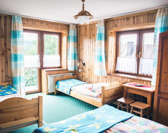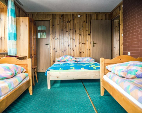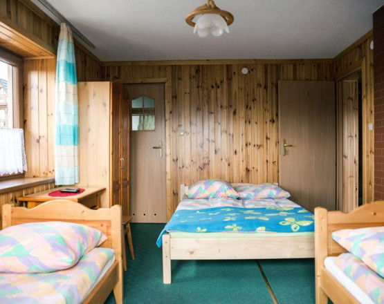 - 1 czteroosobowy lub trzyosobowy z łazienką i TV