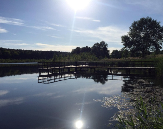 Tuż obok ośrodka znajdują się również dwa urokliwe stawy z pomostem, które budują wyjątkowy nastrój tego miejsca. Możesz tu przysiąść z kawą i odpocząć albo wybrać się na spokojny spacer o zachodzie słońca.