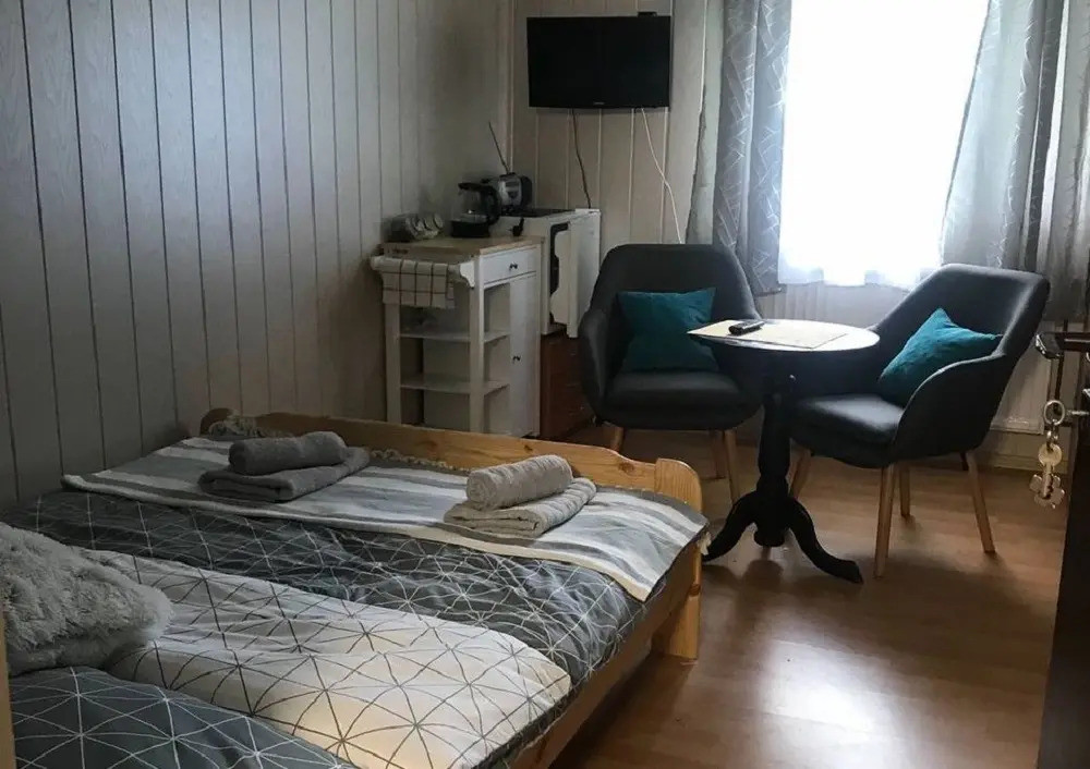 czajnik bezprzewodowy, lodówka, talerze, szklanki i sztućce w każdym pokoju – idealne do przygotowania śniadań i kolacji we własnym zakresie.