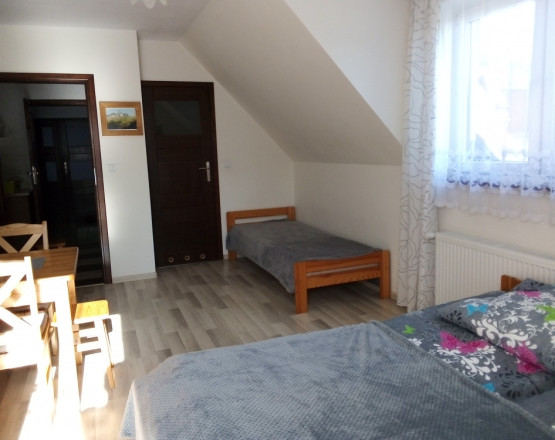 Oferujemy 11 miejsc noclegowych (z możliwością dostawki) w czterech komfortowych pokojach, każdy z łazienką. Dodatkowo, w obiekcie znajdują się dwa aneksy kuchenne, jeden z nich przeznaczony dla dwóch pokoi, co zapewnia wygodę i niezależność naszym gościom.