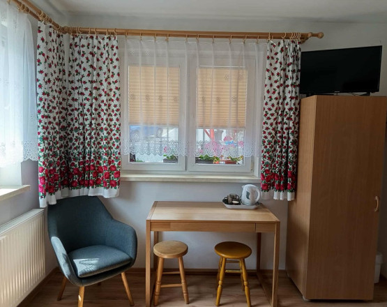 Oferujemy pokoje 2, 3, 4-osobowe oraz większe, idealne dla rodzin i grup zorganizowanych. Wyposażenie obejmuje: