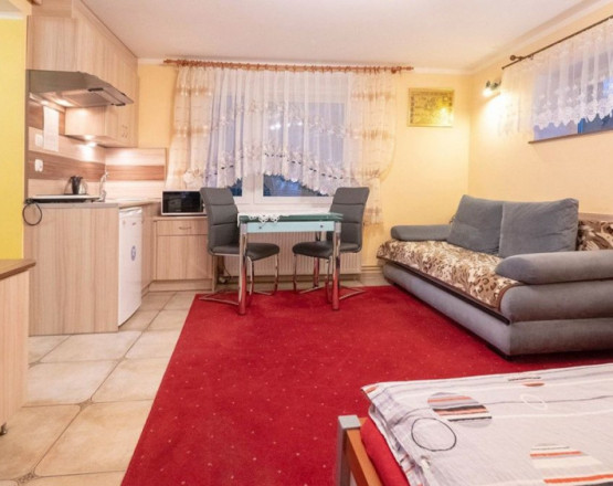 - Przestronny apartament – z osobnym wejściem, łazienką, aneksem kuchennym, Wi-Fi oraz miejscem parkingowym.