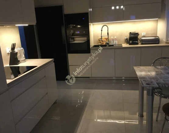 Dodatkową atrakcją jest możliwość skorzystania ze sprzętu sportowego. Na terenie posesji znajduje się drewniana altanka z grillem gazowym, kryty basen, a także ogród z placem zabaw dla dzieci, trampoliną oraz parkingiem.