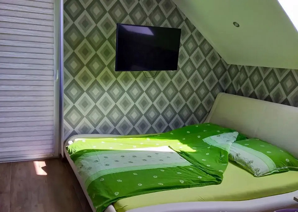 Oferujemy przytulne pokoje 2-osobowe oraz przestronny apartament dwupokojowy, w którym komfortowo wypocznie nawet 5 osób. Do dyspozycji gości oddajemy również wspólny aneks kuchenny z czajnikiem elektrycznym, mikrofalówką oraz kompletem naczyń i sztućców.