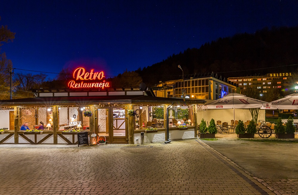 Restauracja Retro powstała w 2010 roku. Początkowo miała spełniać rolę smażalni serwującej świeżego potokowego pstrąga. Z upływem czasu postanowiliśmy wyjść na przeciw oczekiwaniom naszych klientów i powiększyliśmy naszą kartę o dodatkowe dania kuchni Polskiej oraz Włoskiej. Retro to niezwykle urokliwe miejsce, przepełnione miłą i rodzinną atmosferą, którą dodatkowo umili Państwu przepiękna muzyka z dawnych lat...