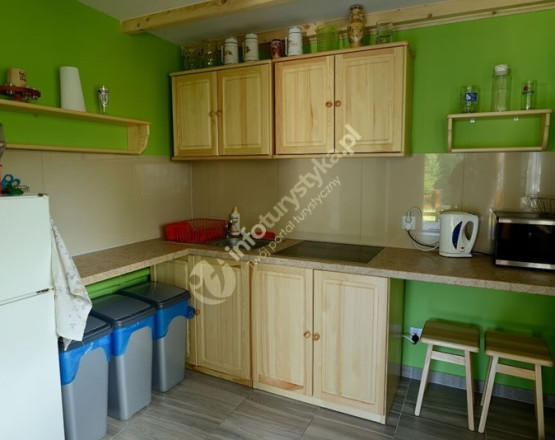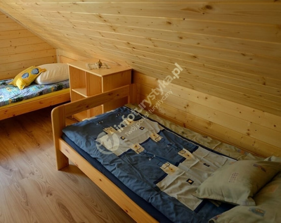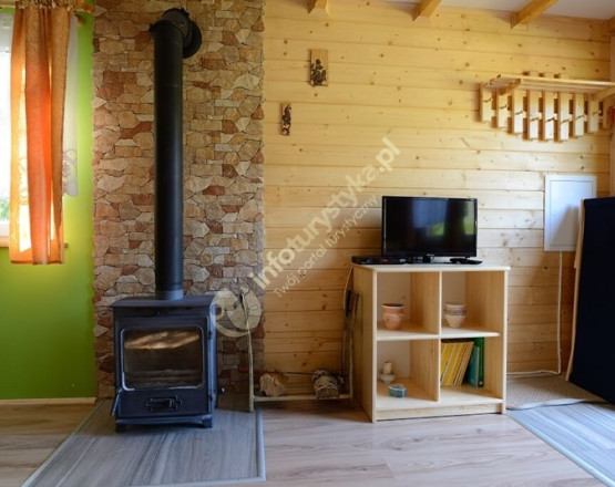Na parterze znajduje się łazienka, w pełni wyposażona kuchnia i salon kominkowy z TV, radiem i rozkładaną kanapą. Na poddaszu do dyspozycji są dwie sypialnie 4-osobowe.