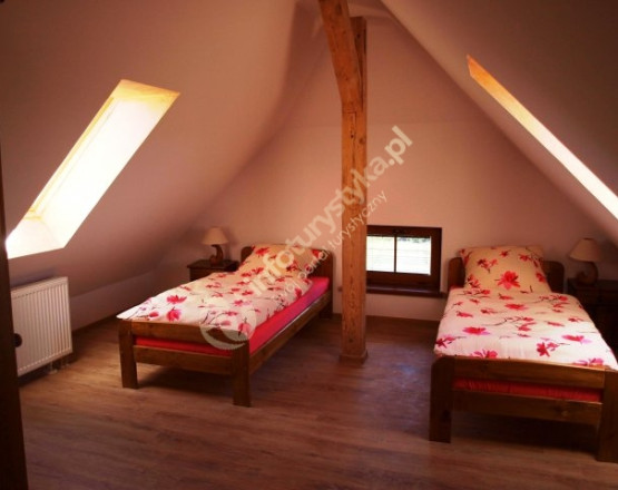 - Poddasze: 2 pokoje 2-osobowe (wspólna łazienka)