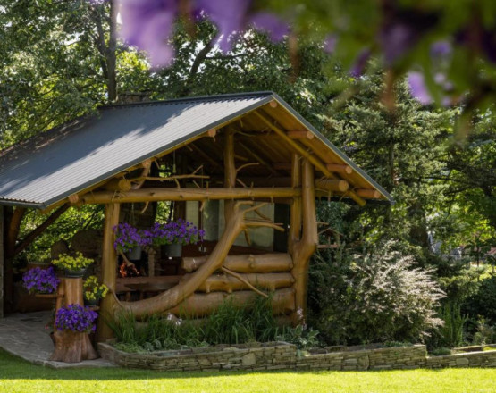 Kamienny grill i altanka – idealne „posiadówki” do późnego wieczora.