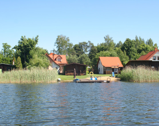Wypoczynek w domkach nad Jeziorem Wydmińskim, na działce z własną linią brzegową i prywatnym pomostem, to doskonałe miejsce dla rodzin czy grupy przyjaciół. Do dyspozycji gości oddajemy dwa całoroczne domki, z których każdy pomieści max. po 6 osób. Teren jest ogrodzony i oświetlony. Samochody można zaparkować na zamkniętej posesji. Zapewniamy bezprzewodowy dostęp do Internetu (WiFi). Ponadto do dyspozycji naszych gości jest kajak, 2 łodzie wiosłowe (jedna z silnikiem elektrycznym), 1 rower wodny, 10 rowerów turystycznych (na dwa domki). Na terenie posesji (ok. 15 arów) miejsce na ognisko, grill, meble ogrodowe, 2 huśtawki ogrodowe, hamak, huśtawki dla dzieci, piaskownica z domkiem i zjeżdżalnią dla dzieci.