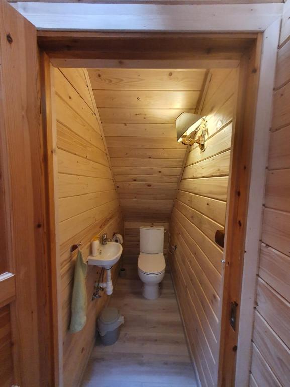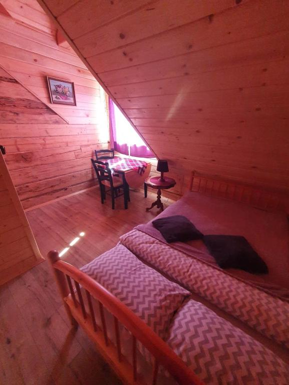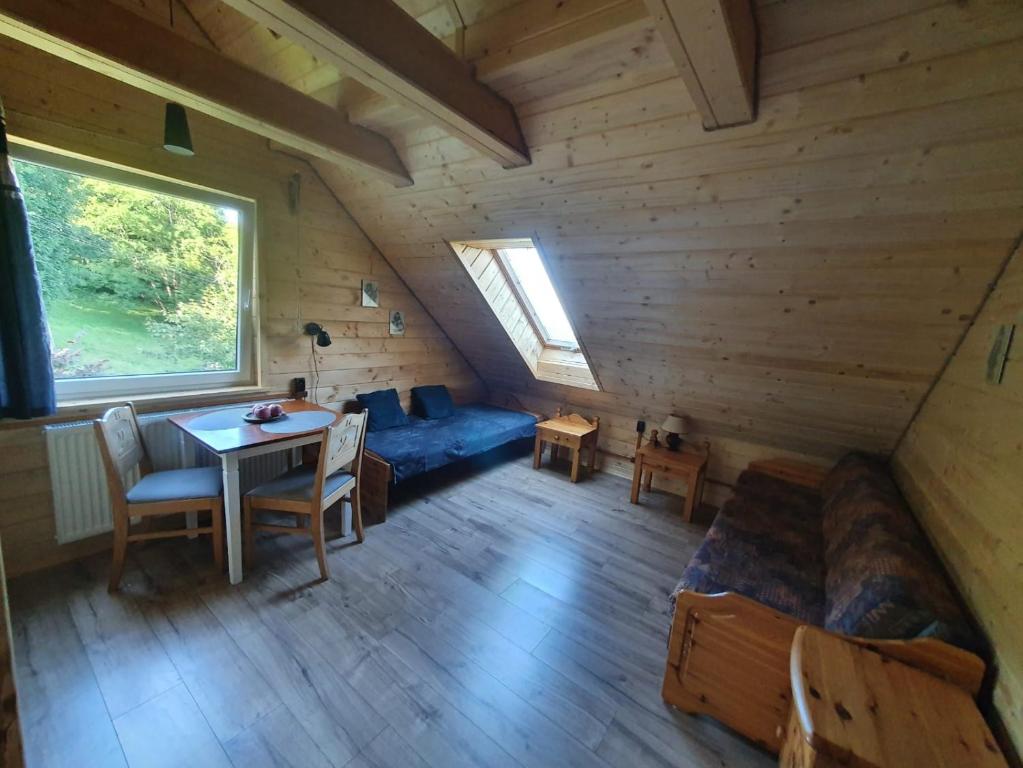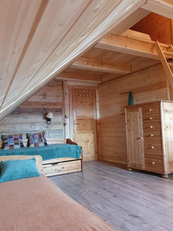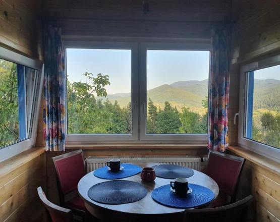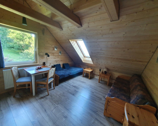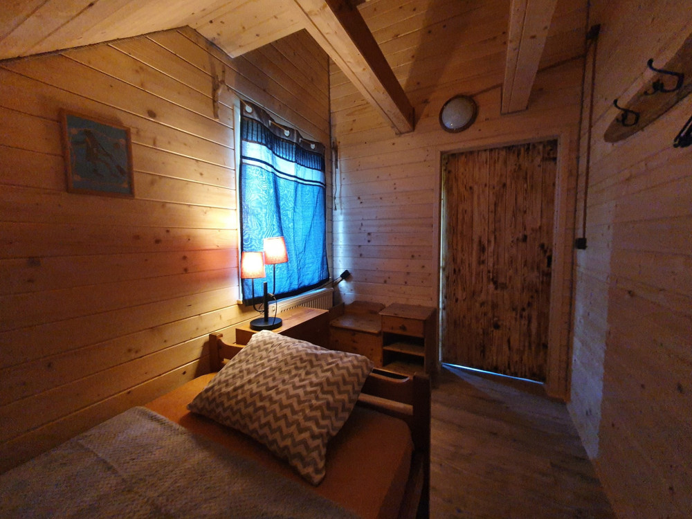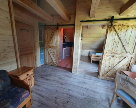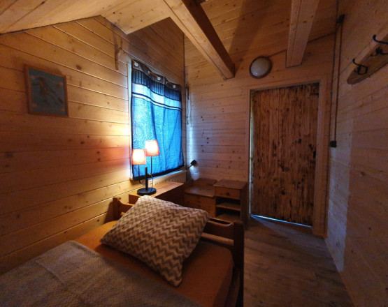 Gości przyjmujemy w drewnianej chacie w stylu schroniskowym – prostej, przytulnej i pełnej charakteru. Do dyspozycji są pokoje noclegowe oraz wspólna jadalnia z aneksem kuchennym, gdzie można przygotować posiłek i spędzić czas po dniu na szlaku.