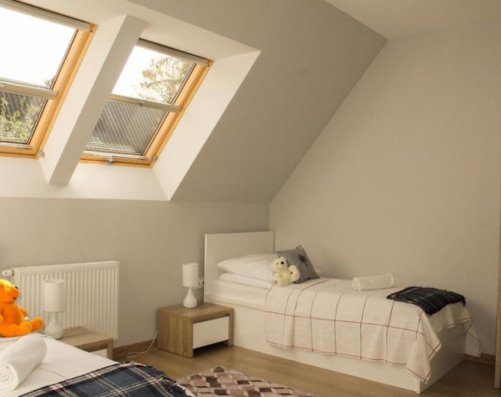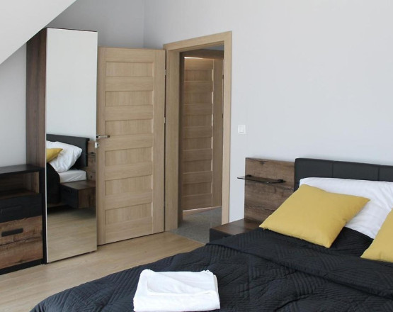 Każdy z naszych domków zapewnia pełen komfort: przestronny salon, dwie łazienki, w pełni wyposażoną kuchnię, balkon oraz słoneczny taras. W pobliżu znajdują się restauracje, sklepy, cukiernie i poczta. Zapewniamy bezpłatny parking oraz szybki Internet światłowodowy. Kuchnie w domkach wyposażone są w nowoczesne urządzenia, w tym płytę indukcyjną, piekarnik, zmywarkę, lodówkę, zamrażarkę, ekspres do kawy, czajnik, toster oraz pełen zestaw naczyń i sztućców. Łazienki oferują komfort z bidetem, suszarką do włosów, żelazkiem, deską do prasowania oraz zestawem ręczników. Dodatkowo, domek 6-osobowy wyposażony jest w pralkę automatyczną i kuchenkę mikrofalową.